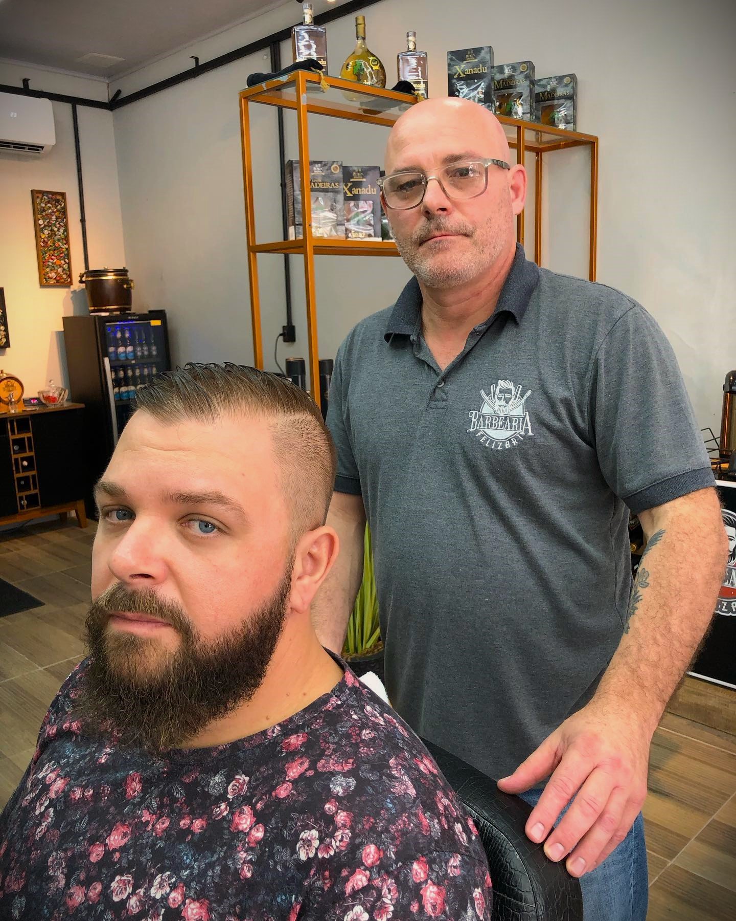 BARBEIROS Os especialistas São mais de 50 anos de conhecimento e experiência.Tiago Felizari tem 21 anos de conhecimento, que trouxe da cidade de Curitiba.Jean Valle 30 anos de experiência, que foi adquirida na cidade de Blumenau.E continuam buscando cada vez mais aprendizado, para poder melhor atender os seus cliente de classe. Tiago Felizari Jean Valle Os especialistas